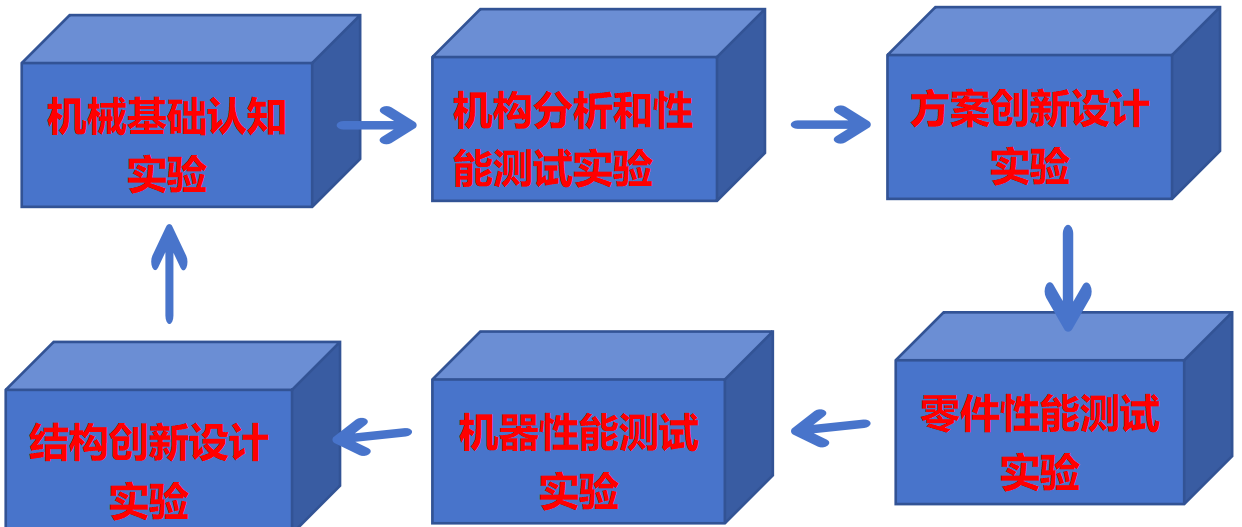 近年来,为了突出机械大系统整体观念的培养,在实验内容上进行了整合和更新,将实验分为机械认知实验、机构性能分析与测试实验,方案创新设计实验,零件性能测试实验,机器性能测试实验和结构创新设计实验共六类实验。依托机械大类实践教学平台,逐步减少孤立的、分散的基于课程的小实验,改为项目式、跨课程、贯通式的综合性教学实践,将设计性和综合性实验的占比提高到约50%,大幅提升了学生的综合设计能力和动手能力。另外,实验室还自制了大量的仪器设备,不仅投入实验教学,有的还向外进行了推广,教学效果良好。