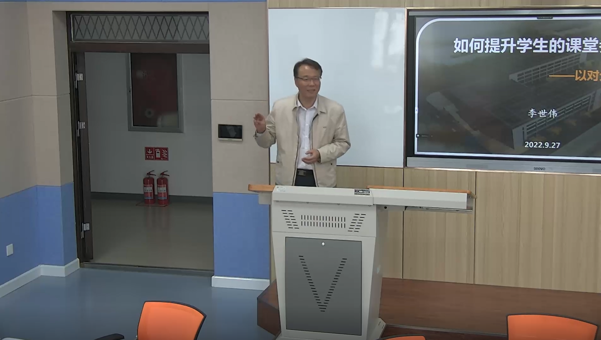 李世伟副教授作了主题为“如何提升学生的课堂参与度-以对分课堂为例”的教学沙龙。在交流中,李老师从学生的课堂参与度入手,围绕“什么是学生的课堂参与度”“有效提升学生参与度的关键”“实践与反思”等主题,融入教育学、心理学、脑科学等方面的知识,借助现场小实验、小手工制作等,分享自身长期以来的教学实践经验。为广大教师呈现了一场幽默风趣、互动频繁的教学沙龙。