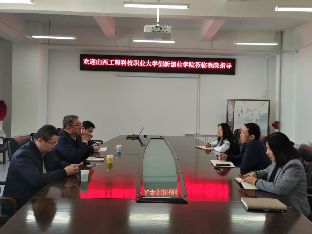 3月27日下午,山西工程科技职业大学创新创业学院负责人张杰明、行政教学干事要俊杰、创新创业大赛干事史武良一行来我院,就学生创新创业课程建设、学科竞赛、双创平台管理等工作进行调研。双方在创新创业学院A401会议室进行座谈。创新创业学院工程训练中心副主任冯再新、学院教学科和双创科负责人出席座谈会。