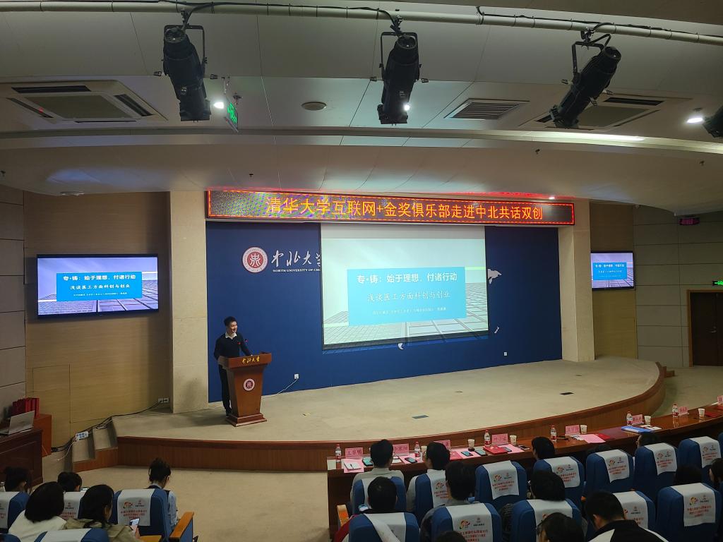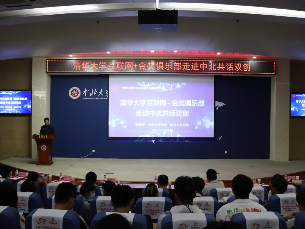 新时代有新使命,新青年有新作为。5月26日上午,校庆82周年校庆周纪念活动——清华大学互联网+金奖俱乐部走进中北共话双创主题论坛在瑾瑜国际会议中心圆满举办。本次论坛由中北大学教务部、创新创业学院与航空宇航学院共同主办,中北大学副校长蔡江辉、教务部部长王召巴、航空宇航学院院长李京阳、教务部副部长高春强出席本次论坛,论坛由创新创业学院院长王黎明主持,共吸引了全校400余名师生共同参加。