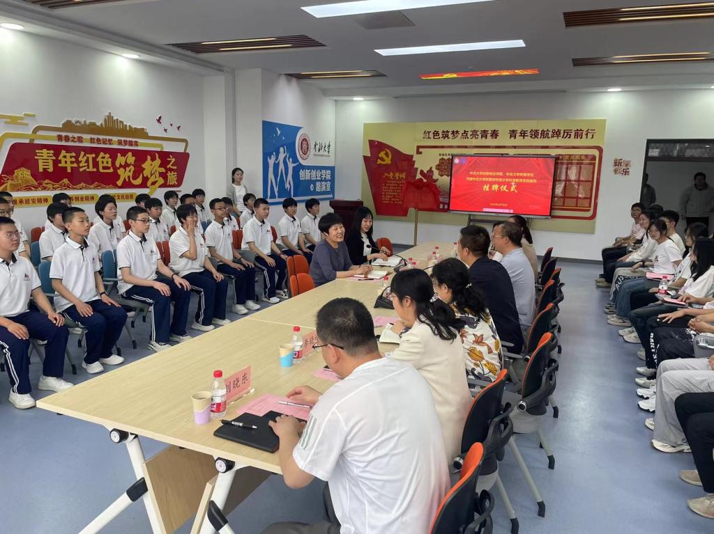 创新创业学院党总支书记高春强、附属学校校长张峻岭、创新创业学院、附属学校相关科室负责人及60余名大学生、中学生代表共同参加了仪式。