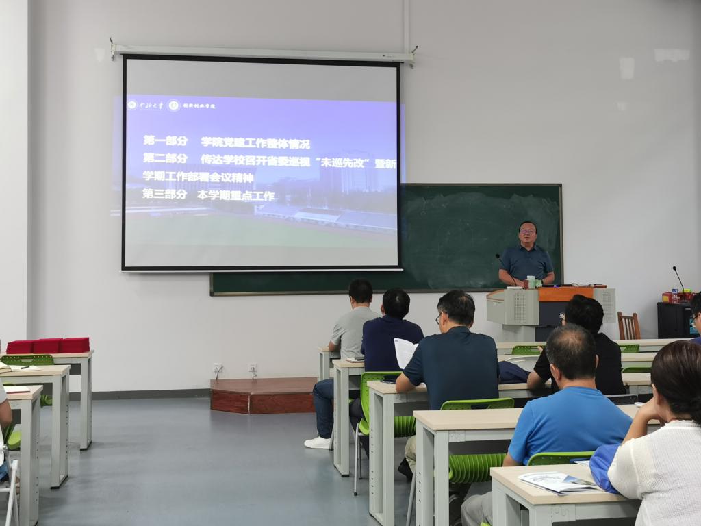 高春强书记传达了学校召开的省委巡视“未巡先改”暨新学期工作部署会议精神,对学院上一学年党建工作进行总结,提出了新学期工作具体要求。他要求全体职工:一要强化大局意识,以昂扬的斗志饱满的热情,投入到迎评促建工作中去;二要提高政治站位,安全生产再细化再落实,确保学院各项工作平稳运行;三要突出问题导向,找短板强项补不足扩优势,力争学科竞赛排名再提升;四要破除惯性思维,建章立制规范过程管理,提升内涵全面建设一流学院。