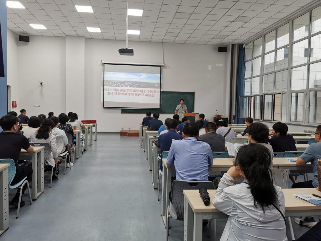 为贯彻落实学校召开的“省委巡视‘未巡先改’暨新学期工作部署会议”精神,确保学院本学期各项工作有序开展,圆满完成学校本科教育教学审核评估工作任务,9月6日下午创新创业学院在学院C座202教室召开新学期工作部署会暨本科教育教学审核评估动员会。会议由院长王黎明主持,院党总支书记高春强、工程训练中心副主任冯再新、各教学部主任出席,全院教职工参加了会议。
