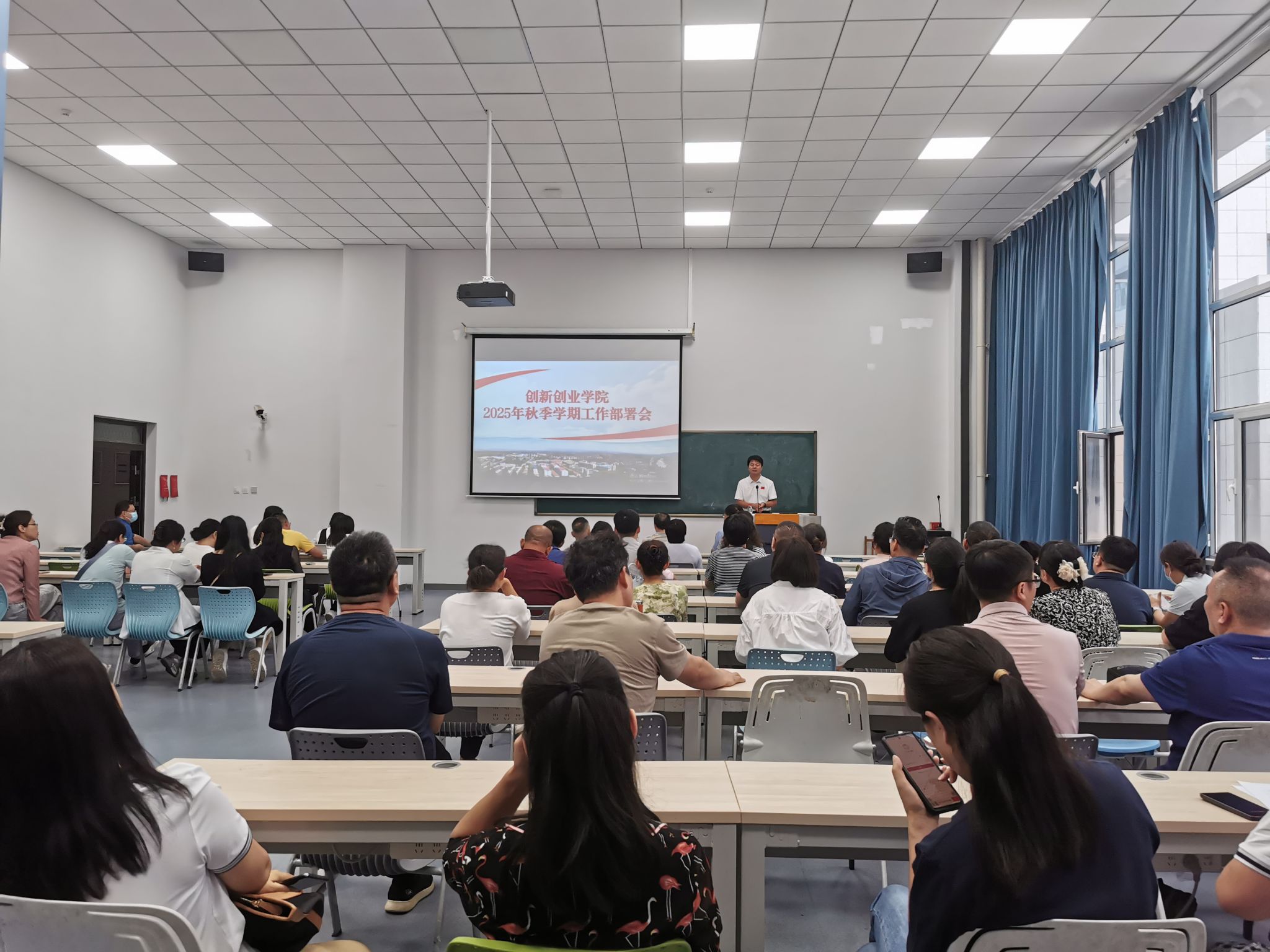 秋阳灿灿,征程新启。为确保新学期各项工作平稳开局、高效起步,进一步统一思想共识、凝聚奋进力量,9月2日下午,创新创业学院在学院C座202教室隆重召开2025年秋季学期全体教职工大会。学院院长曹凤才主持会议,党政领导班子成员及全体教职工齐聚一堂,共商新学期发展大计。
