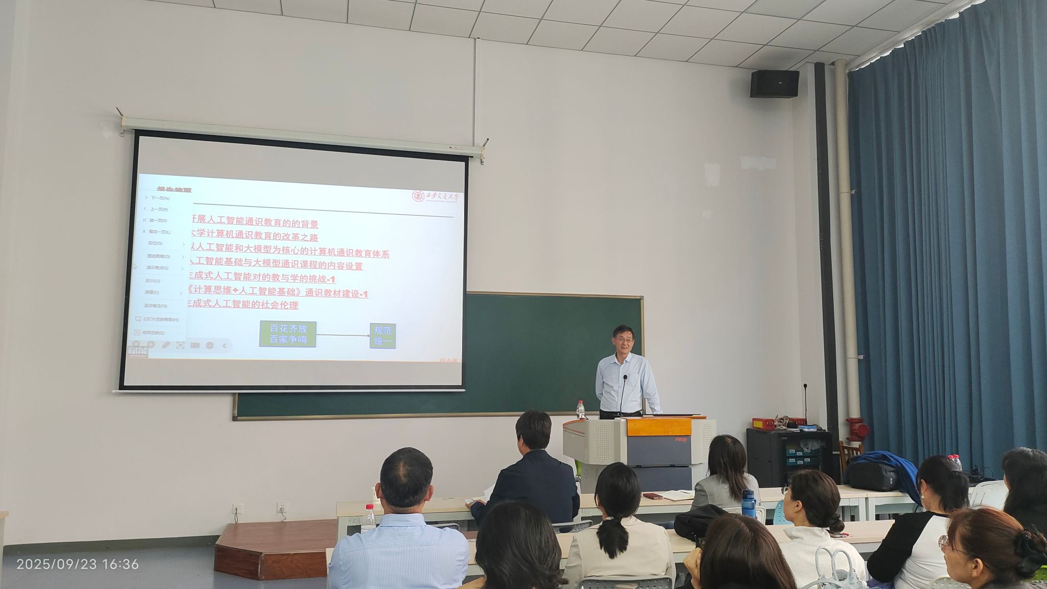 9月23日下午,创新创业学院邀请西安交通大学桂小林教授作了“深入推进以人工智能和大模型为核心的计算机通识教育”的专题讲座,曹凤才院长主持,学院教师和部分学生代表参加了本次讲座。