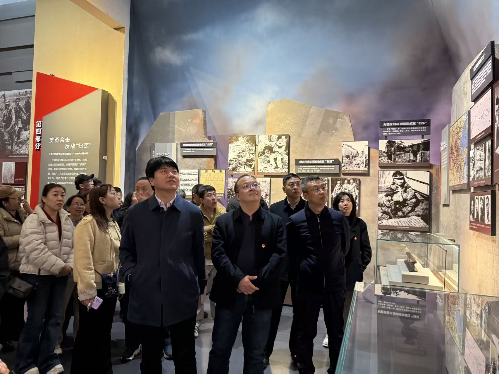 在百团大战纪念馆,党员同志通过一幅幅泛黄的历史照片、一件件承载岁月记忆的革命文物、一段段生动的情景再现,详细了解了百团大战的历史背景、战斗过程和伟大意义。大家深刻感悟着八路军将士的英雄气概和中华民族不畏强敌、敢于斗争的伟大抗战精神。