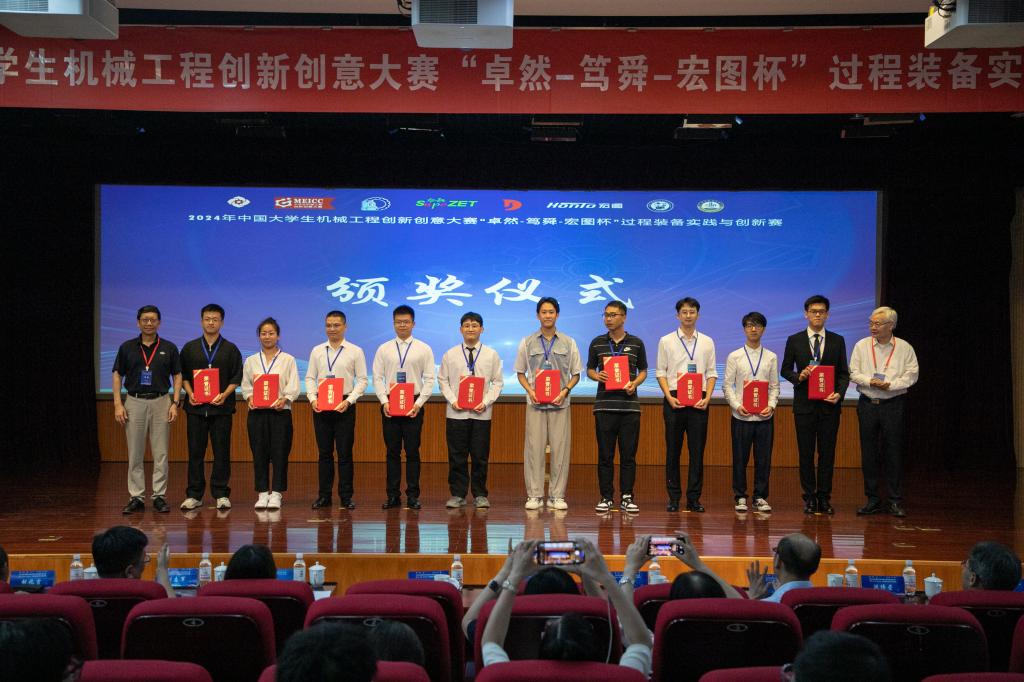 2024年8月24日-26日,中国大学生机械工程创新创意大赛——第15届过程装备实践与创新大赛全国决赛在中国石油大学(华东)举行。本届大赛自2024年4月大赛开始征集作品以来,大赛组委会共收到来自全国171所高校 2965 件作品报名。经过校赛和全国九个区域赛评审,最终600件作品进入全国赛。我校学子不畏强手,团结协作,最终在包括西安交通大学、天津大学、四川大学、东北大学、华东理工大学、中国石油大学等在内的全国171所参赛高校中脱颖而出,收获国家一等奖3项,二等奖5项、三等奖1项的优异成绩。获奖等级及数量创历史新高,一等奖位居华北赛区首位。